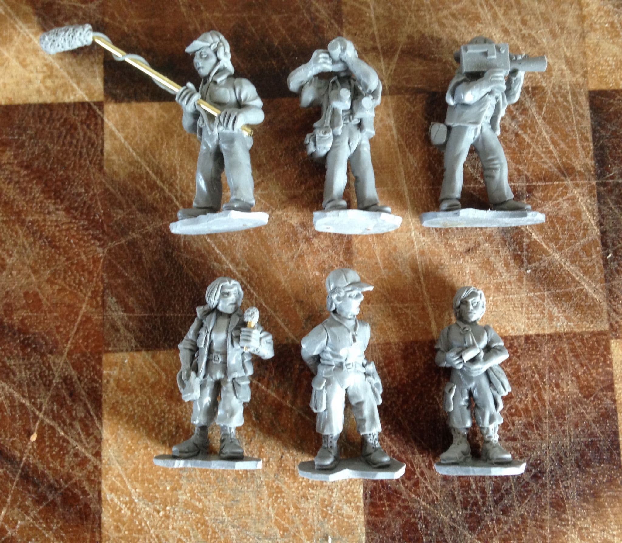 Set contains six metal figures. Cameraman, soundman and various reporter types plus a military adviser to keep them in check!